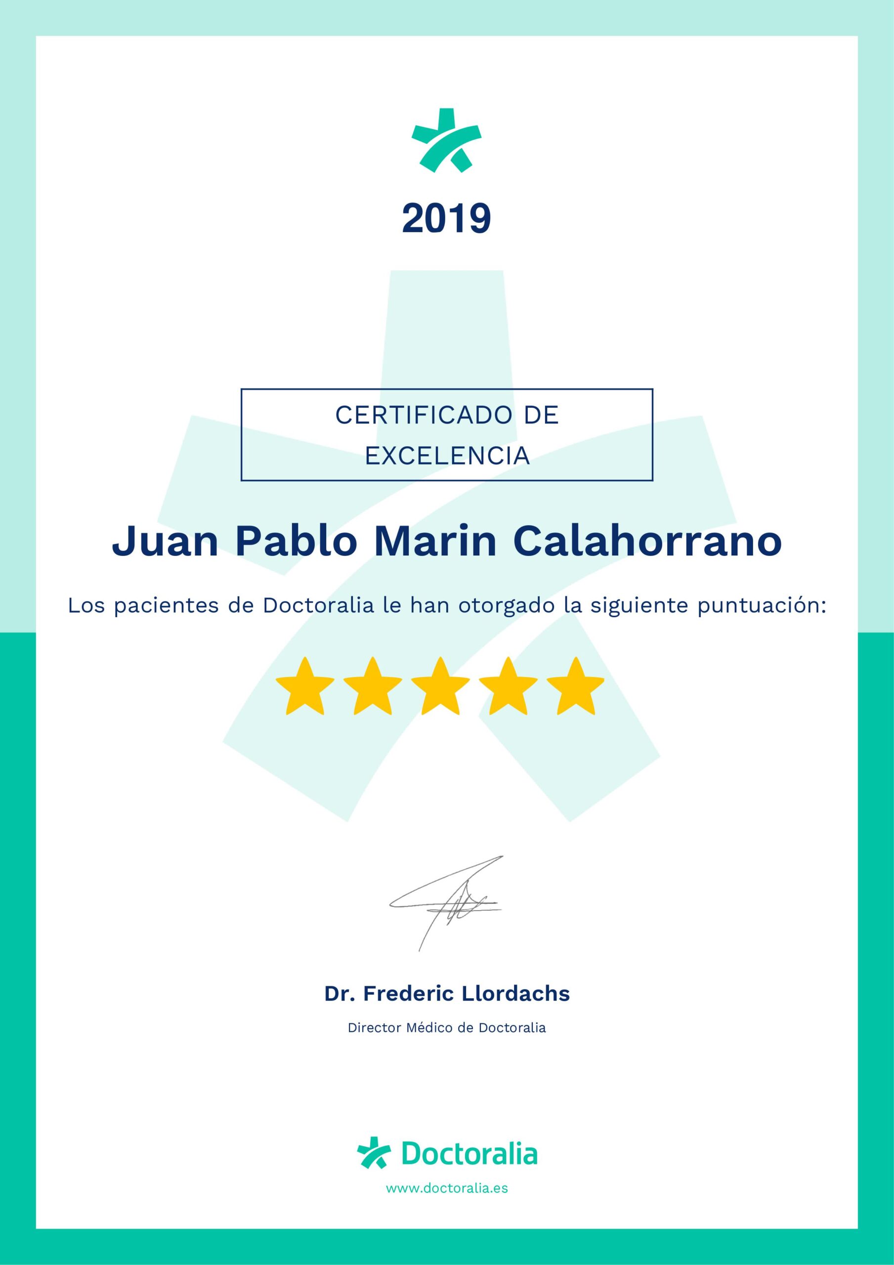 Mi nombre es Juan Pablo Marín Calahorrano, soy Cirujano General y del Aparato Digestivo y es una suerte poder dedicarme a mi trabajo y un privilegio poder mejorar la calidad de vida de mis pacientes, curándolos de sus enfermedades para que se reincorporen cuanto antes a su actividad habitual.